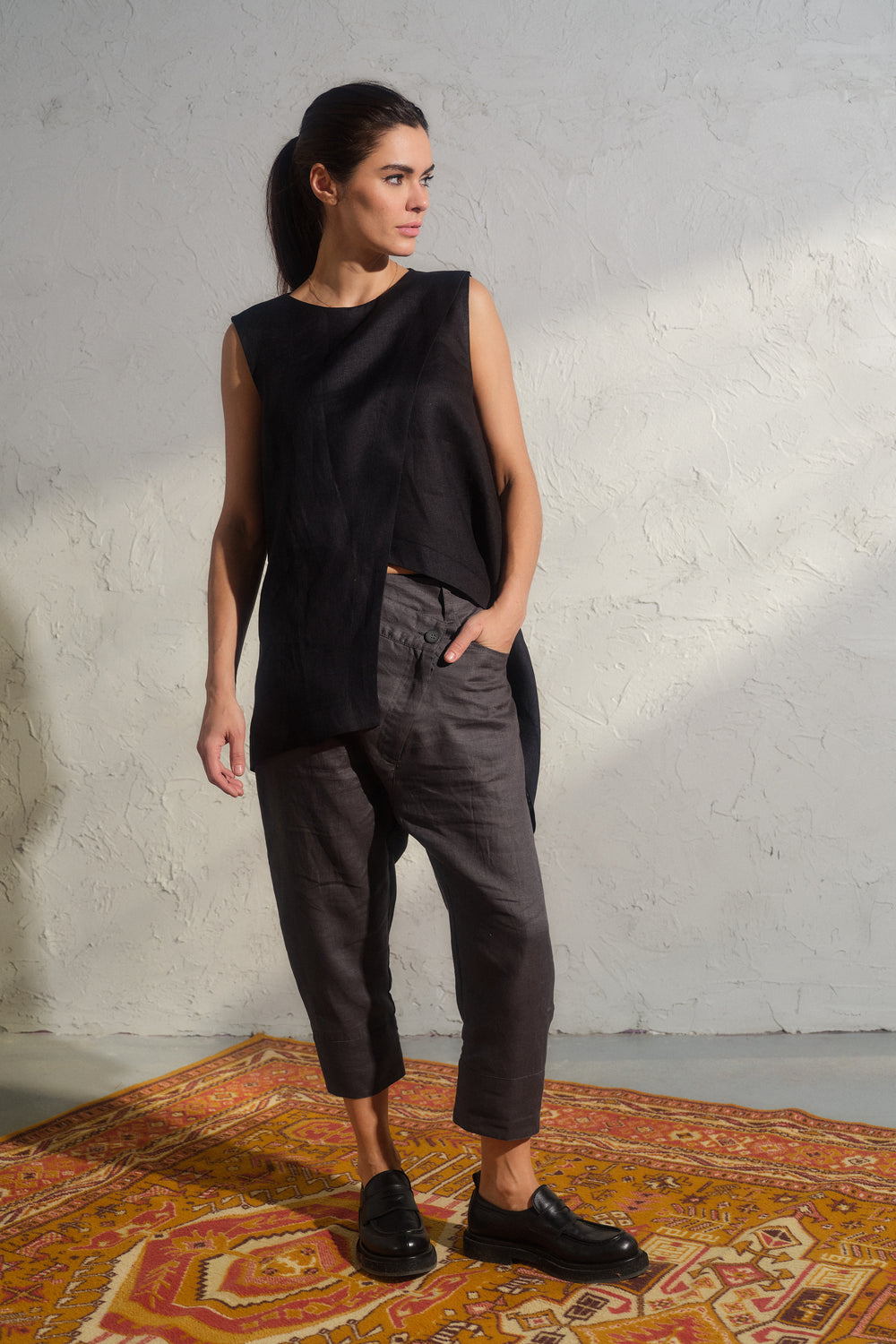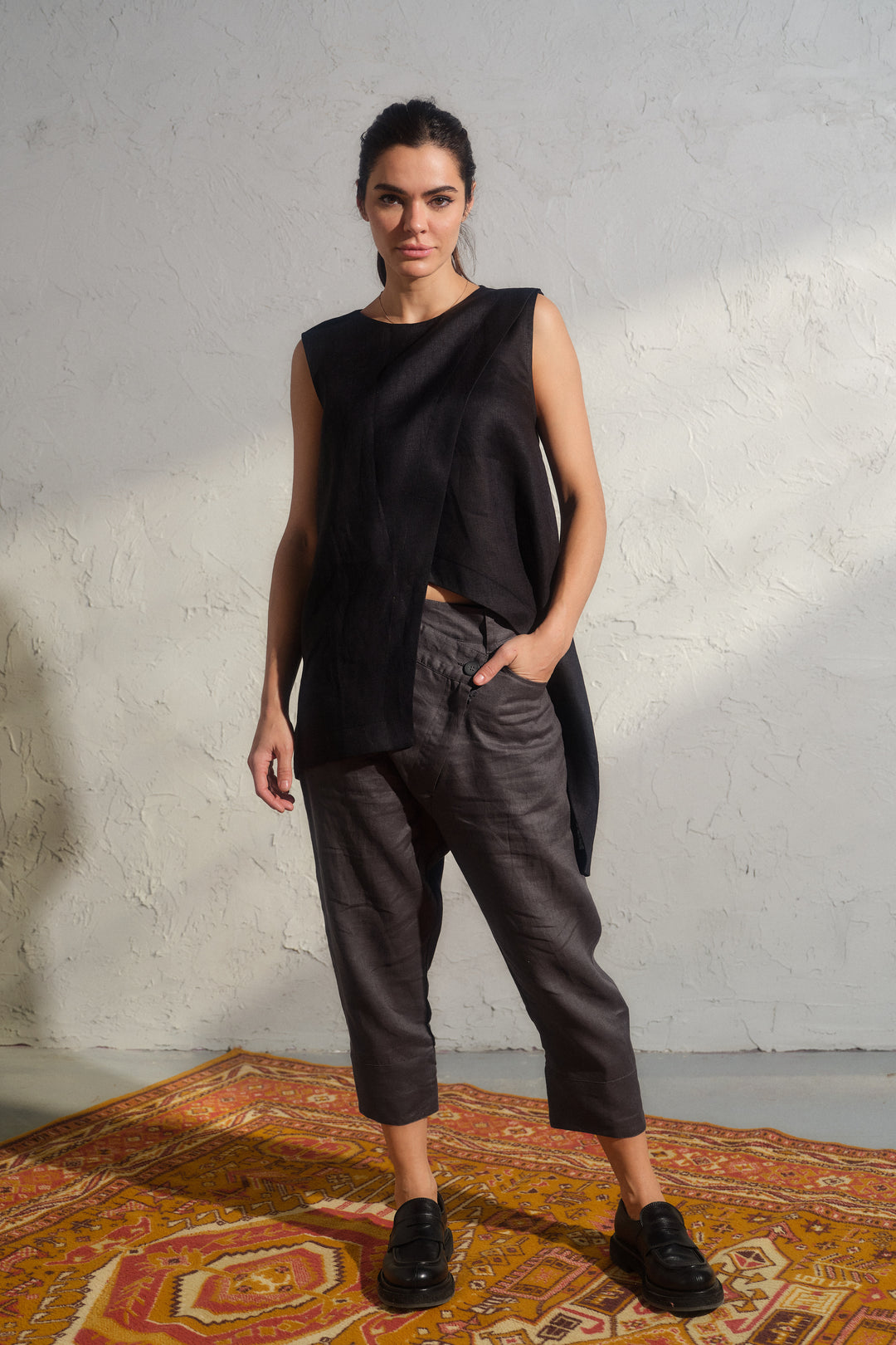 Japanese-Inspired Black Sleeveless Summer Top for Women