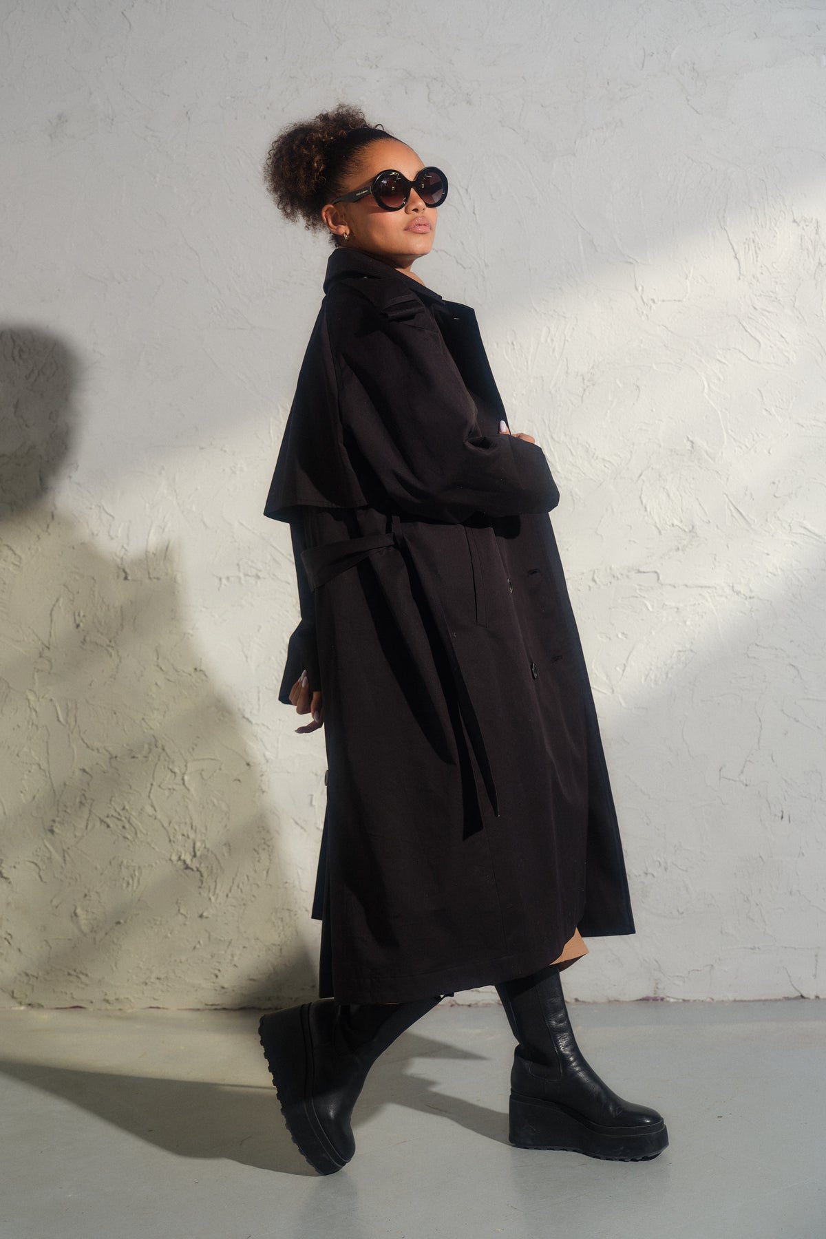 Wear it open for relaxed drape or cinch the waist for a more structured look. Whether you're building a capsule wardrobe or styling your next go-to piece, this trench coat adapts seamlessly to your personal aesthetic.