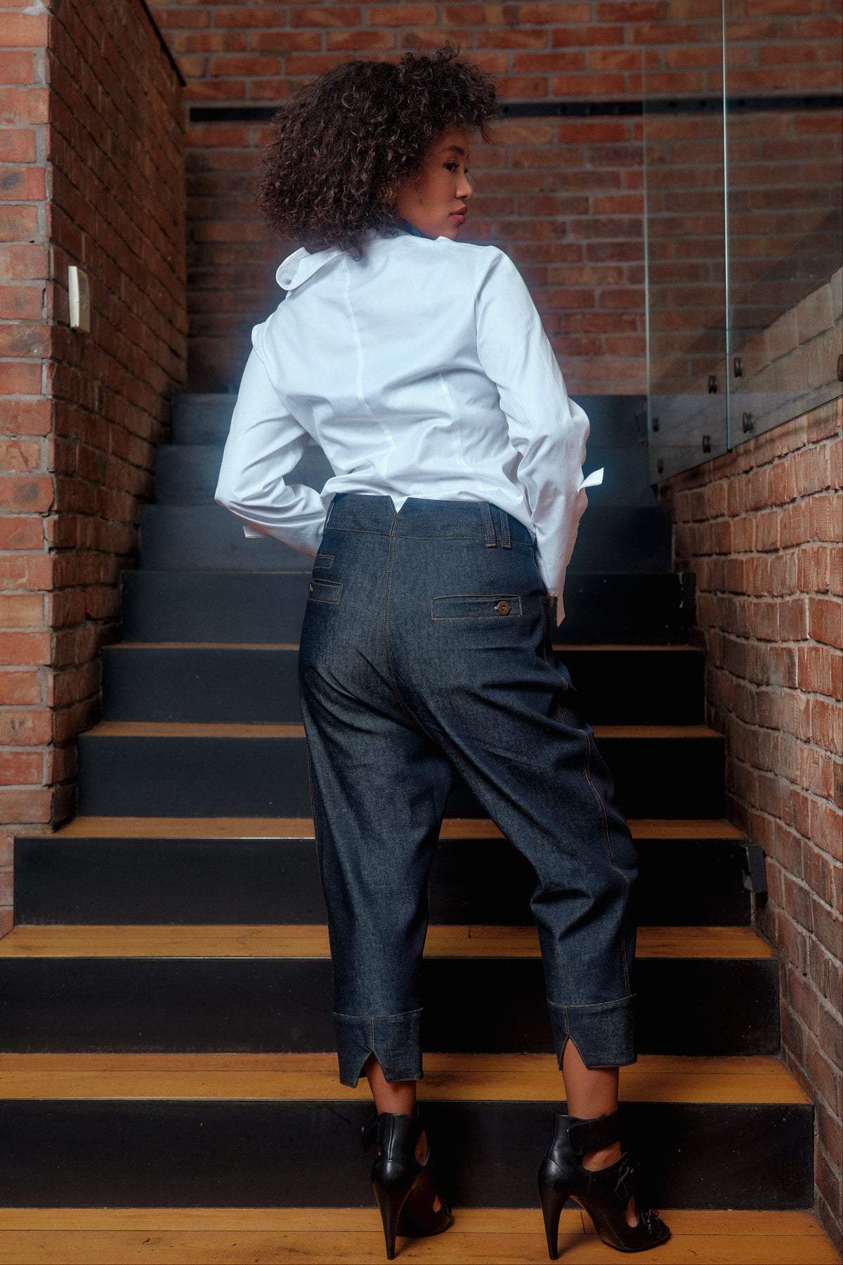 Elevate your wardrobe with our handmade avant-garde drop crotch pants, now reimagined in premium denim fabric for a bold, structured look. Available in five versatile denim shades—from classic black to light blue—these trousers combine sculptural design with everyday function, making them a true statement piece for creative wardrobes.
