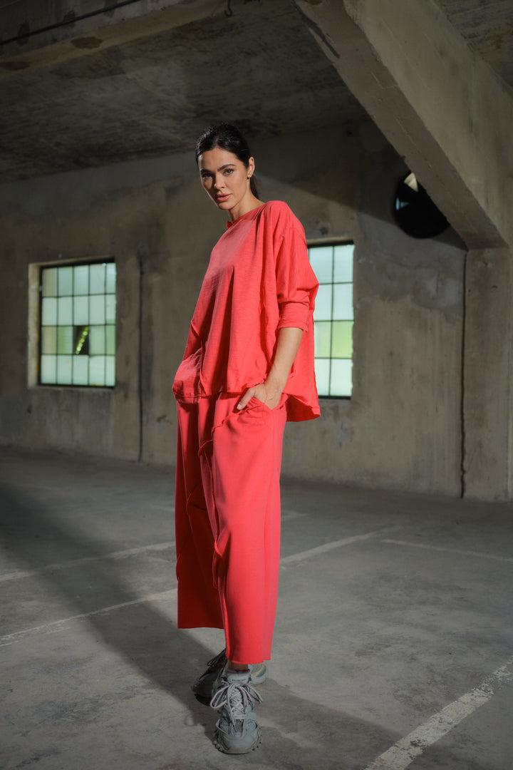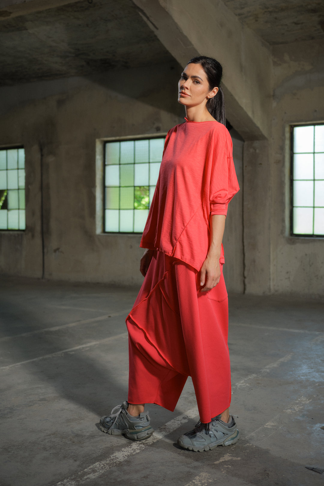 Crafted with care, it features a relaxed fit that drapes gracefully, ensuring comfort and sophistication. The asymmetric design adds an edgy flair, while the 3/4 sleeves provide a touch of elegance.