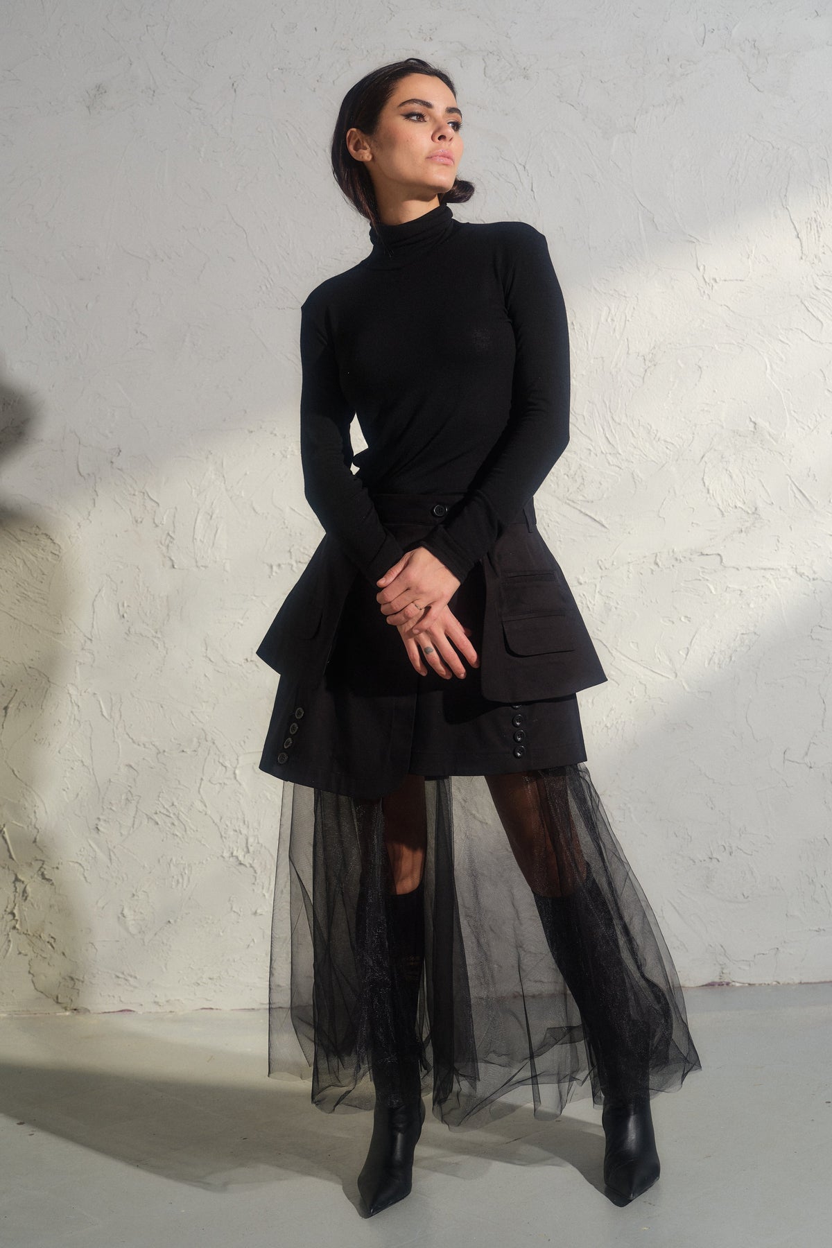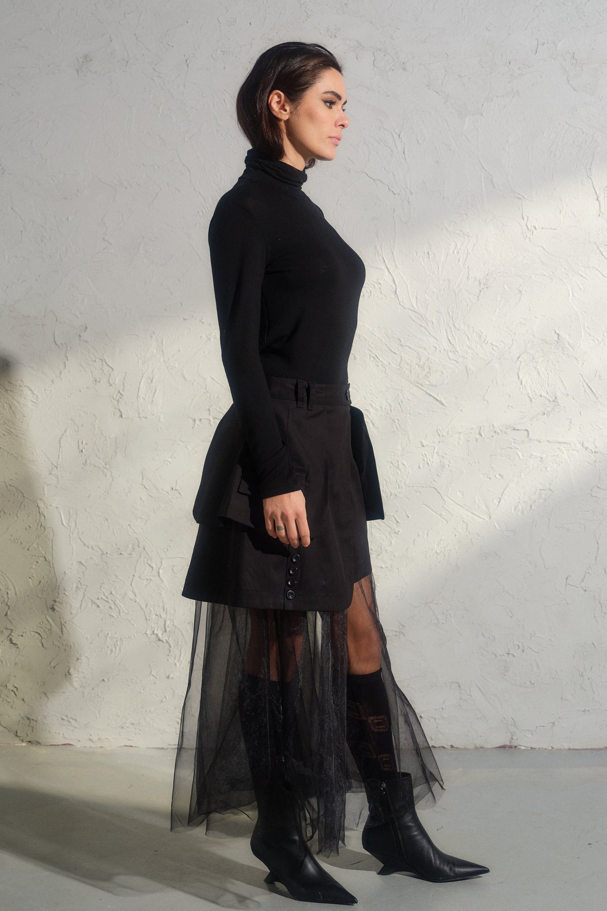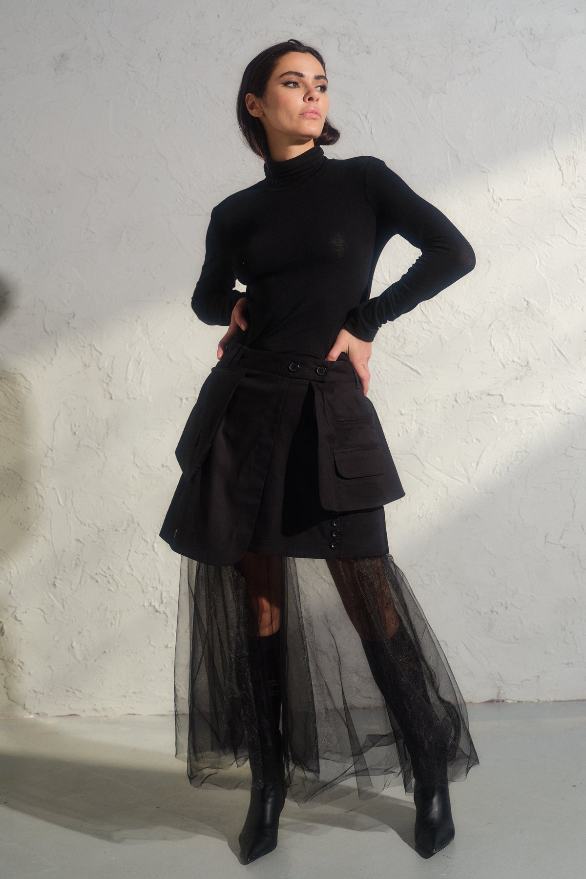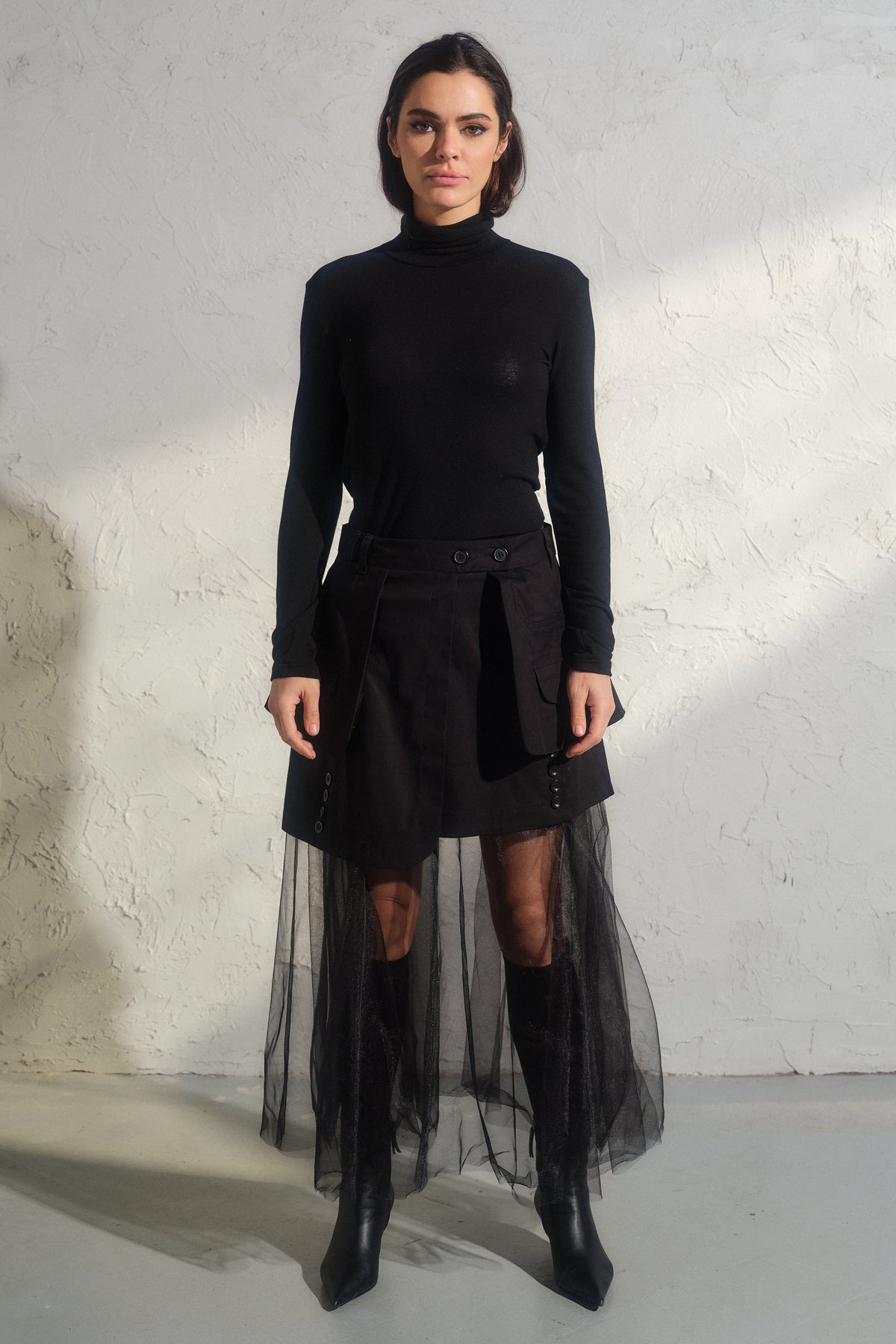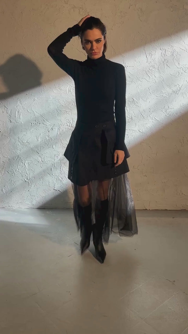 Avant-Garde Mini Skirt with Tulle Petticoat: Edgy Meets Elegant
