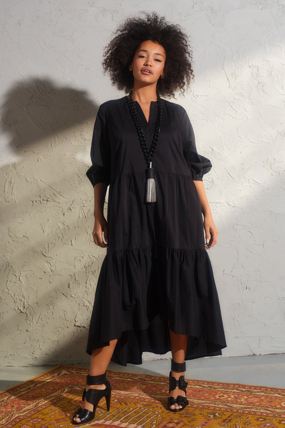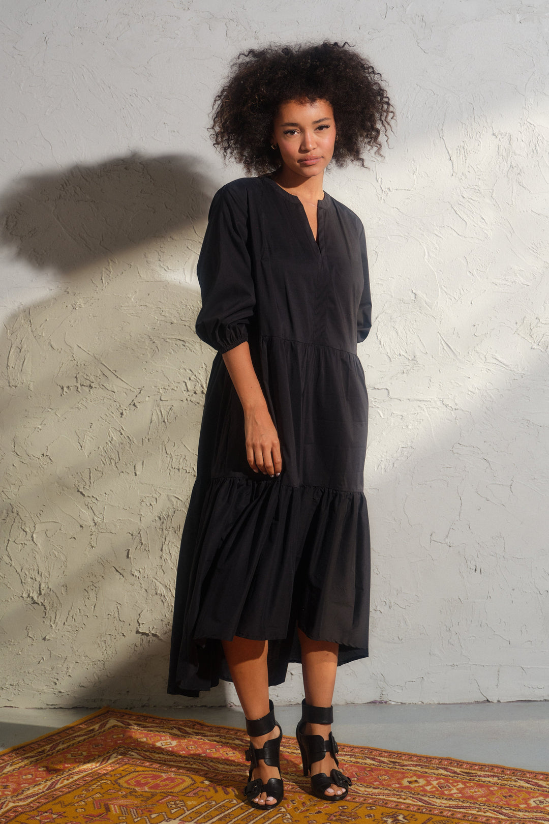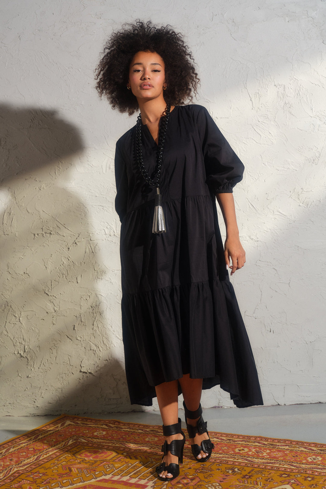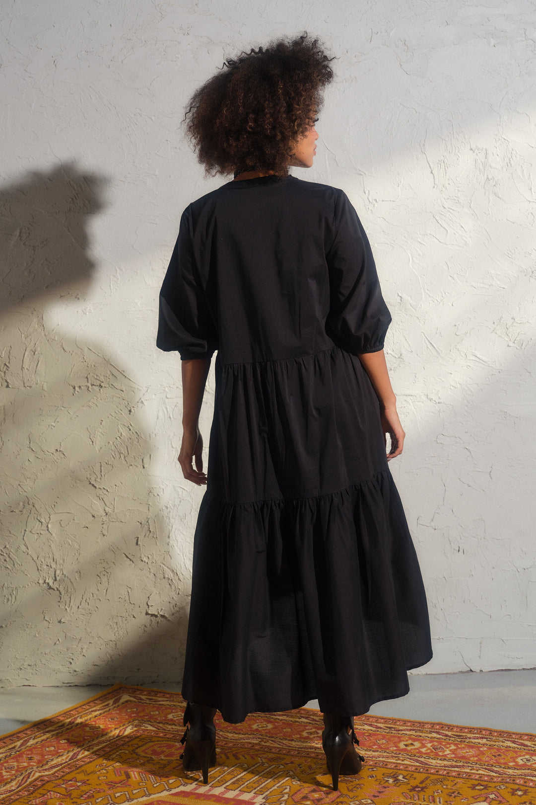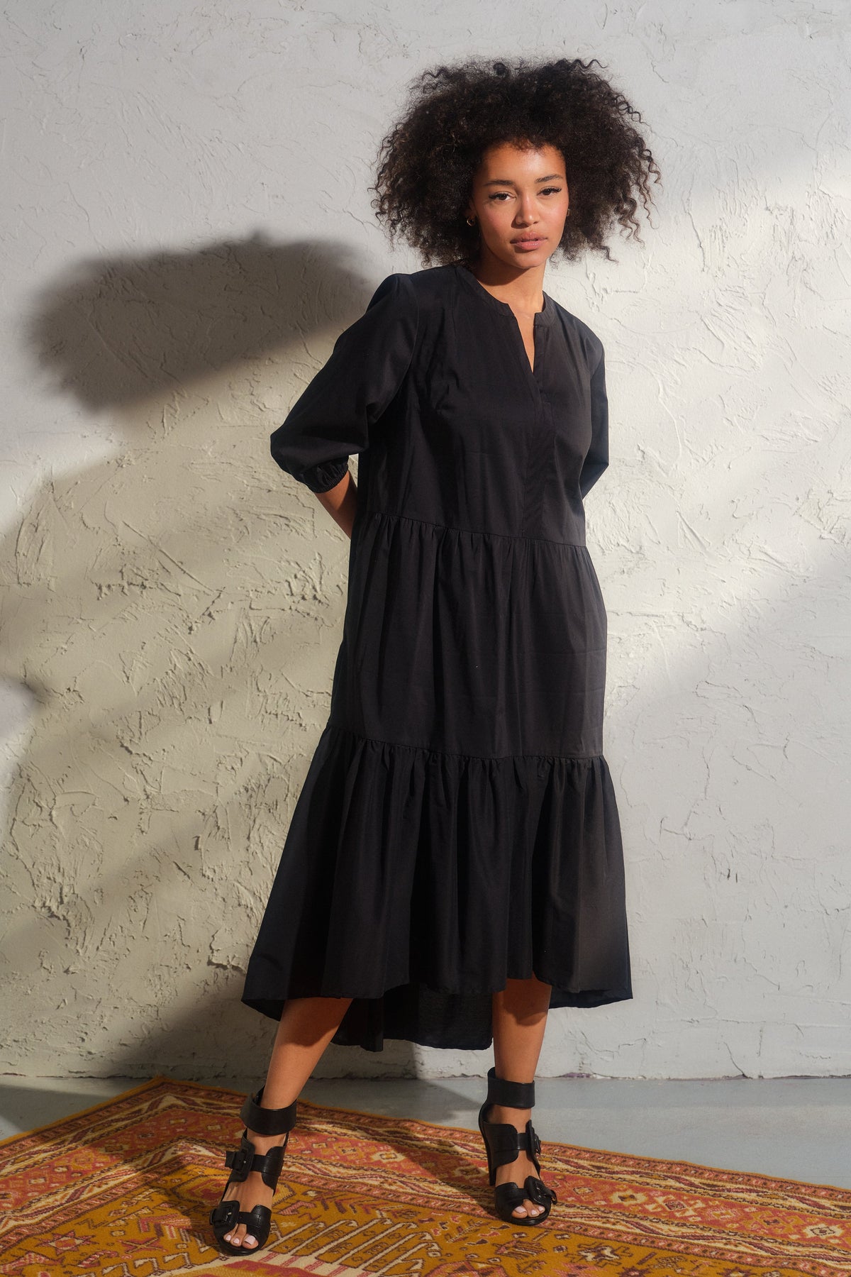 Black Organic Cotton Tiered Dress – Effortless Elegance in Motion