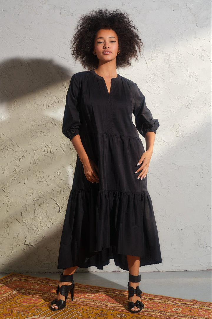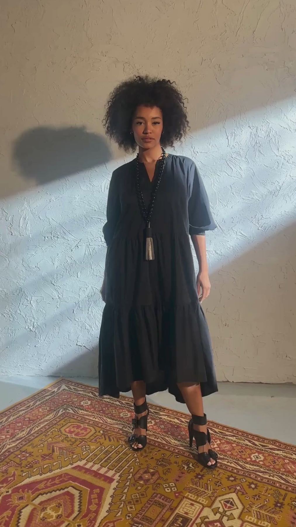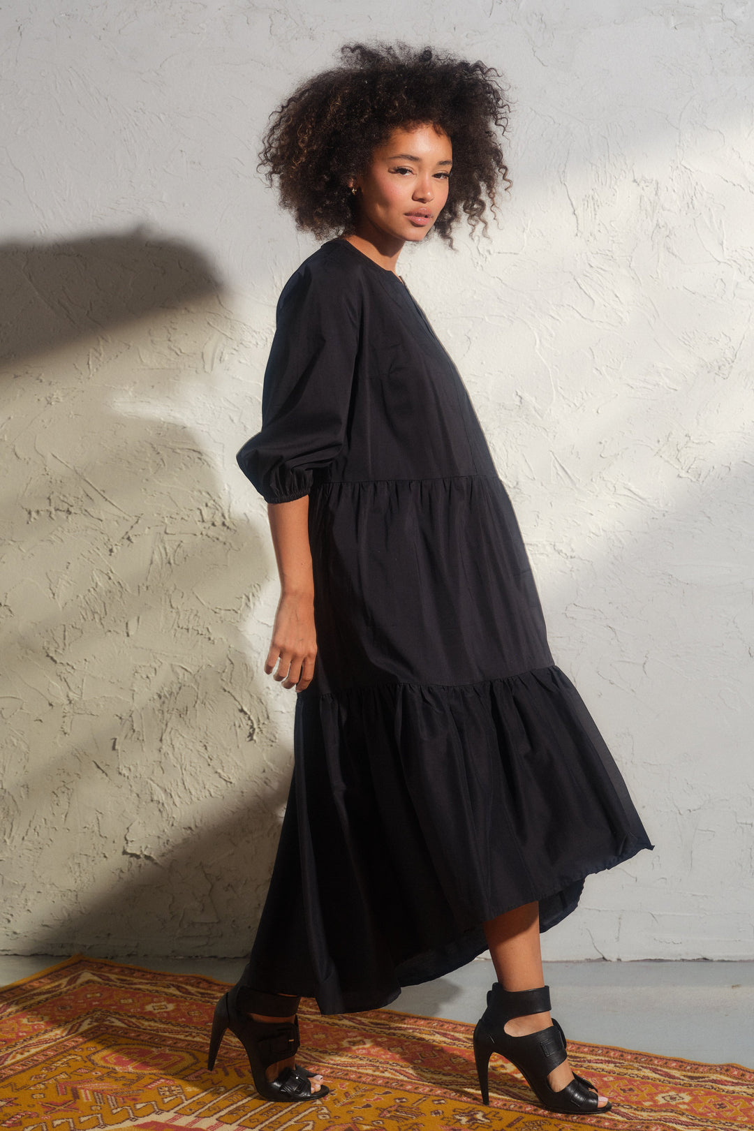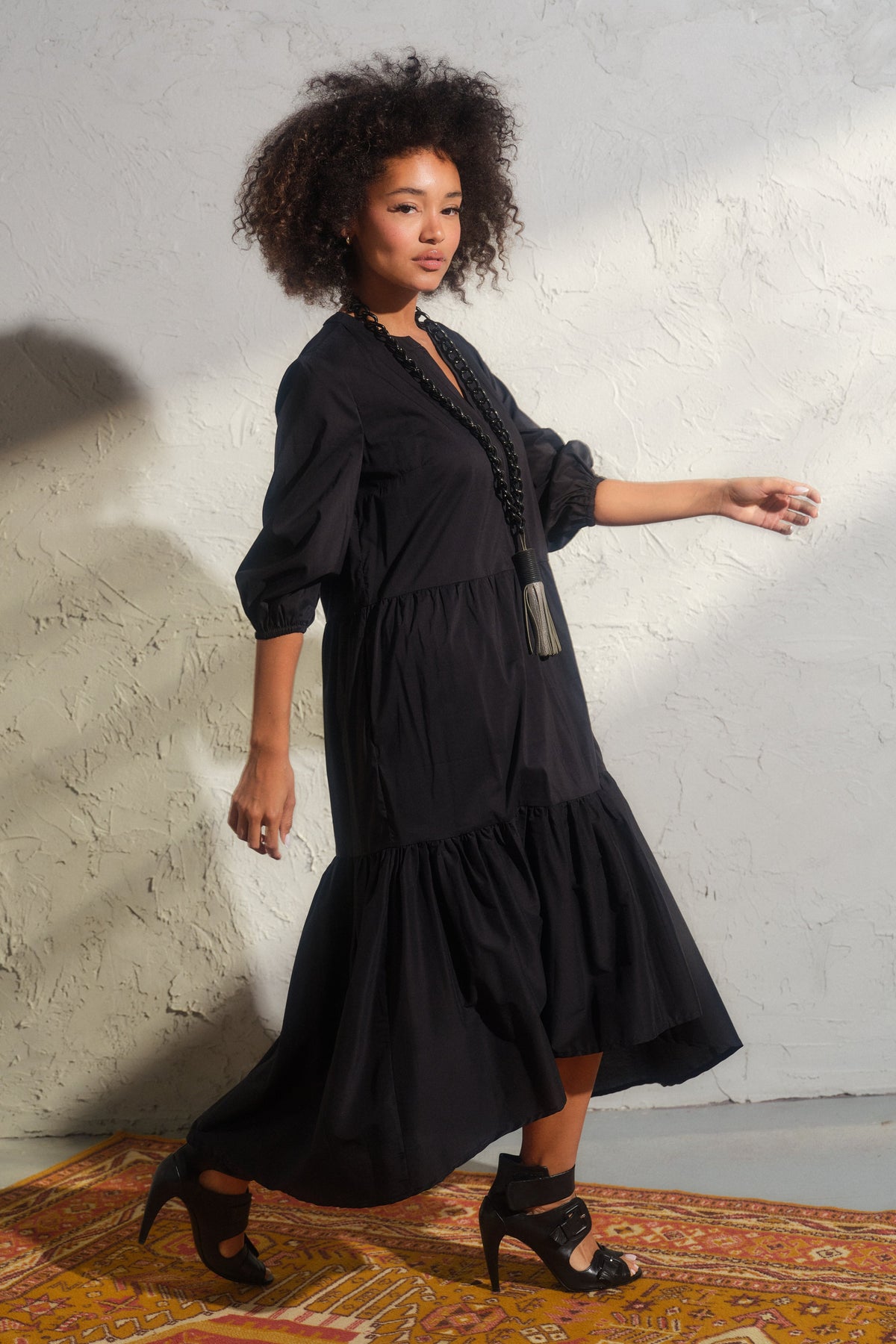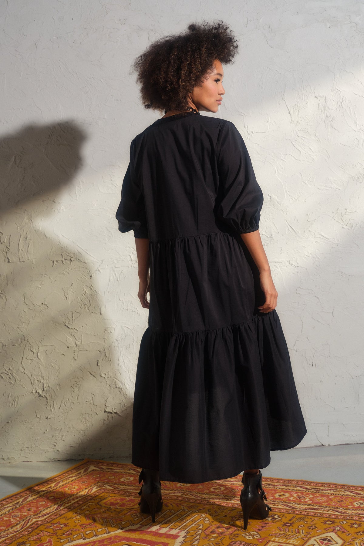 Black Organic Cotton Tiered Dress – Effortless Elegance in Motion