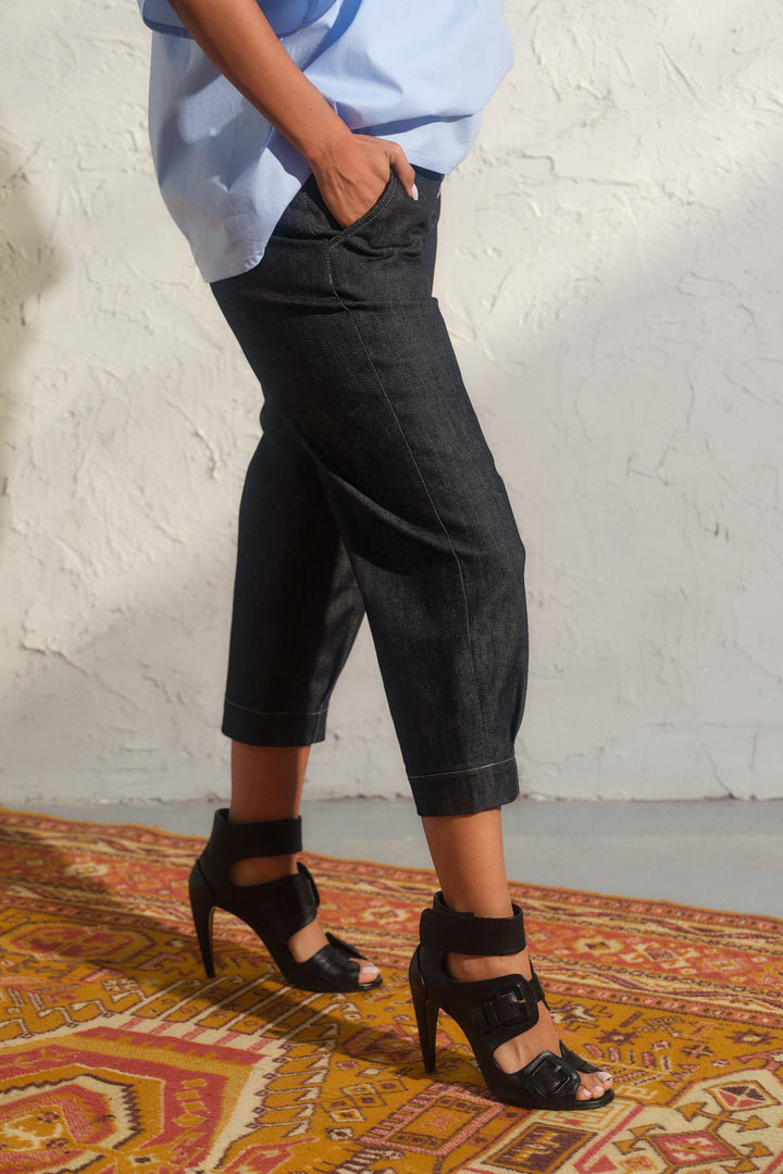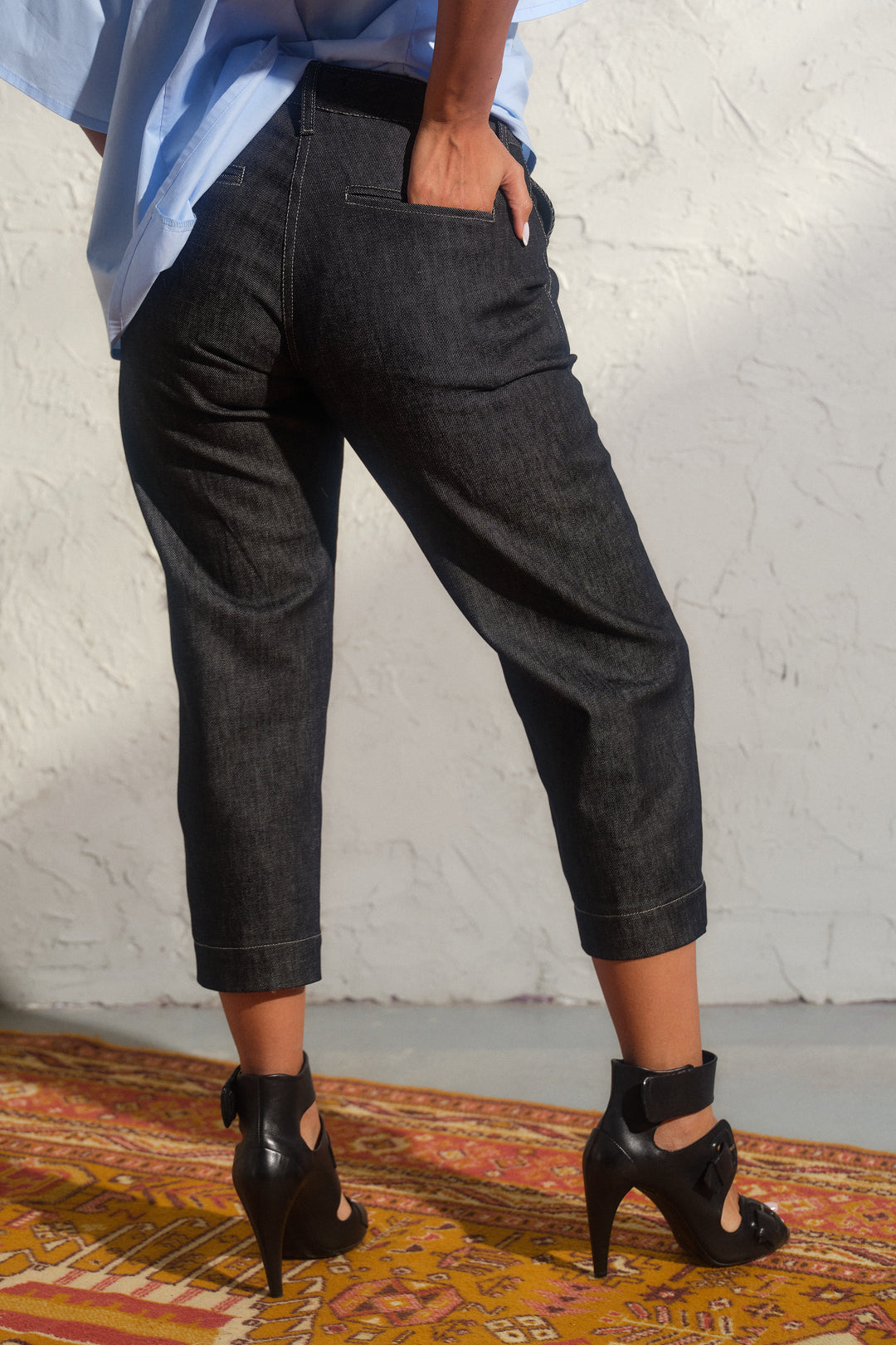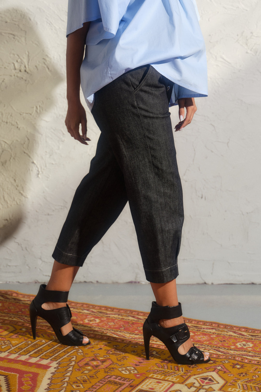 ✨ Modern, flattering, and made to move—these cropped denim pants are a wardrobe staple reimagined.